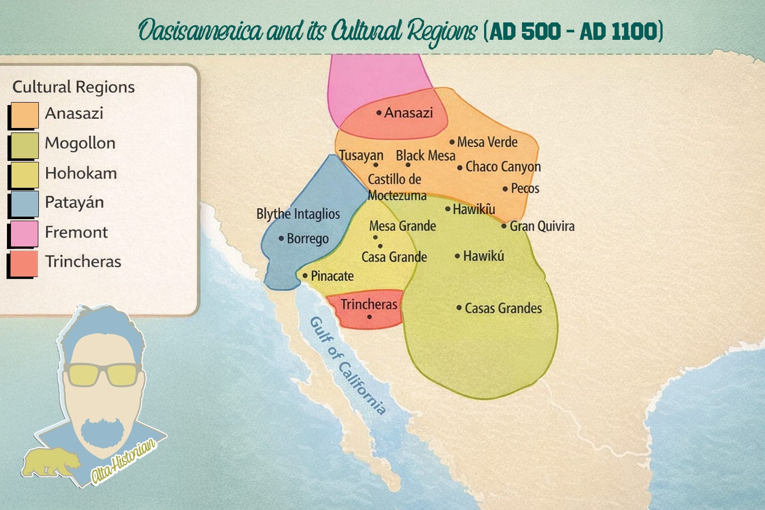Much of what we know of these early Oasisamerican peoples comes from archaeology, and the evidence, lacking a formal writing system, makes much of their world a mystery. Recent discoveries keep pushing that starting point back further and further, as with the recent discovery in White Sands National Park in New Mexico, as presented in the New York Times. At the very least, it is still my view that the ancient past remains provisional and is still being shaped by new technologies, archaeological discoveries, and interpretive frameworks. What is firm is that Oasisamerica’s role as the centerpoint was clearly true, and anything discovered will likely make this more true than it is as I write this today. How do we know this?