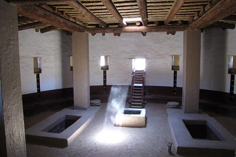 Like other Pueblo peoples, they lived in pit houses with ceremonial centers called kivas, and pit houses in the same style, sunk into the ground and built upward to keep cool in the summers and warm in the winters. When people claim there was no civilization in North America, ask them how much they would pay to live in the kiva pictured below.