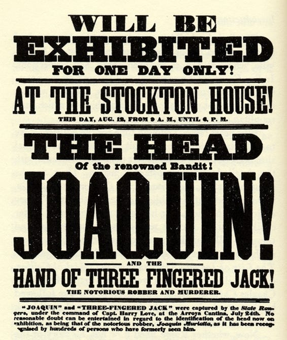 “California Rangers Kill Joaquín Murrieta | July 25, 1853.” History.com. Accessed December 26, 2025. https://www.history.com/this-day-in-history/july-25/california-rangers-kill-joaquin-murrieta.
