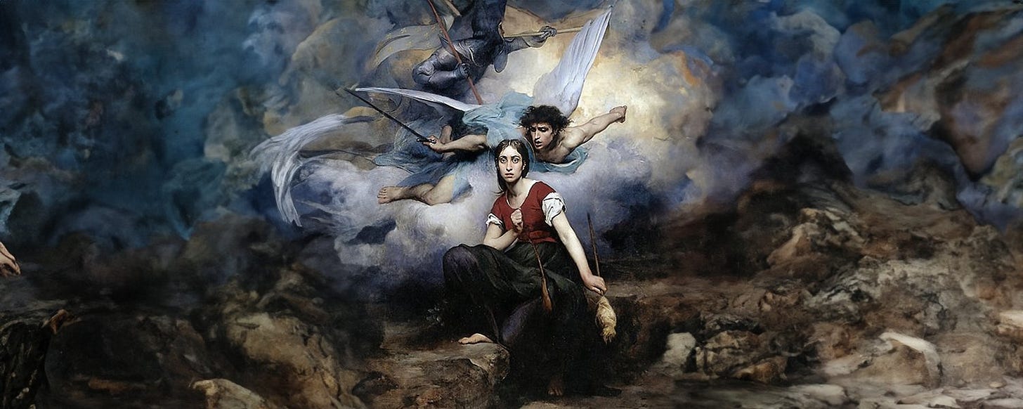 This passage presents excerpts from the trial of Joan of Arc (1431), revealing her unwavering faith in divine guidance and her steadfast commitment to her mission. Interrogated by Bishop Pierre Cauchon and other clerics, Joan defends her visions and voices, claiming they guided her actions, from raising the Siege of Orléans to recognizing Charles VII. Her responses reflect her piety and resistance, as she evades specific questions and refuses to implicate others. The account highlights the political and religious implications of the trial, as her claims of divine inspiration challenged the English occupation of France and ecclesiastical authority.